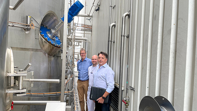 Good Collaboration: Harry Petersen from SKS GmbH, Nicolas Becker, Operations Manager of Wiegert Dairy, and Ralph Christoffers, Sustainability Manager from Alfa Laval (from front to back)
