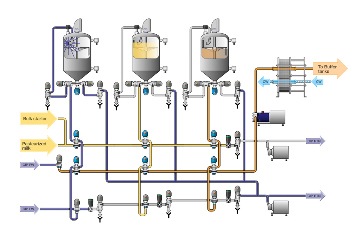 Getting the most from raw materials is essential in production of cultured products and fresh and cured cheeses. Important issues include achieving maximum efficiency in continuous batching, and maintaining hygienic processing conditions