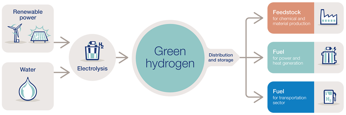 Hydrogen is a clean fuel that can be used in many different sectors, as a feedstock for chemical and material production, a fuel for power, and heat generation in both industrial scale and decentralized solutions. It can even be used as fuel in heavy transportation.