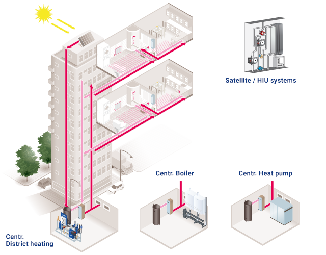 Alfa Laval's domestic hot water solutions are designed to ensure the dependable and economical supply of sanitary water. Our systems can provide domestic hot water for apartments and houses, high-volume tap water for large facilities, and water supplies free from the Legionella bacterium.