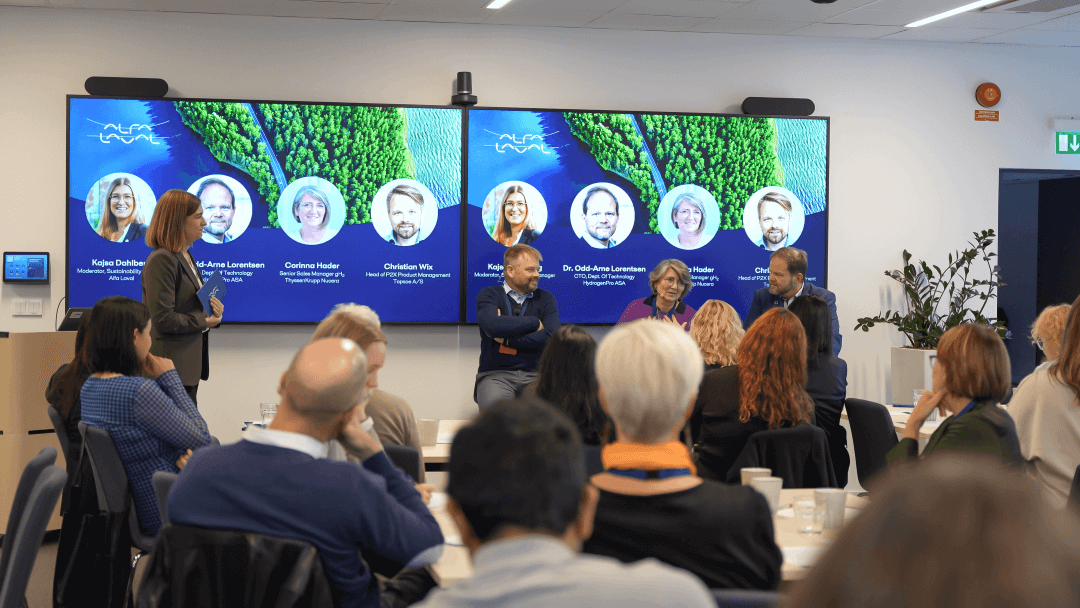 On 5 November 2025, Alfa Laval brought together over 50 process engineers, professors, CEOs and experts in renewable hydrogen for a day dedicated to shaping a more sustainable energy future through strategic action and collaboration. The theme of the event was “Bend the curve” – in other words, how do we take action to secure a positive outcome?