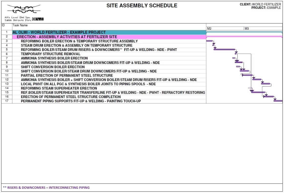 Figure 3. Site assembly schedule.
