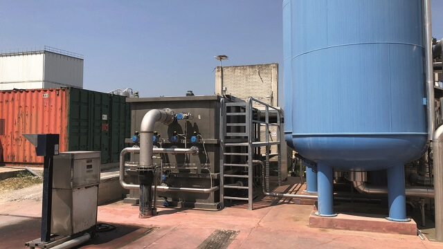 A single, tank-mounted Alfa Laval Iso-Disc cloth media filter unit was installed at the Cesena site. The fully automatic Iso- Disc unit comprises seven 1.5 m square filter elements and is sized to filter an average flow of 200 m³/hour and an average TSS (total suspended solids) concentration of 35 mg/litre. The ability to isolate individual filter elements did away with any need for a standby unit, and therefore significantly reduced the investment needed.