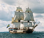 The East Indiaman Götheborg started her proud journey round the world on 2 October 2005. The ship will follow the same route as the trading ships from the 1700s. She will be docking at Cadiz in Spain, Recife in Brazil, Cape Town in South Africa, Freemantle in Australia and Jakarta in Indonesia before she reaches her historic destination of Canton in China where she can expect a magnificent reception.