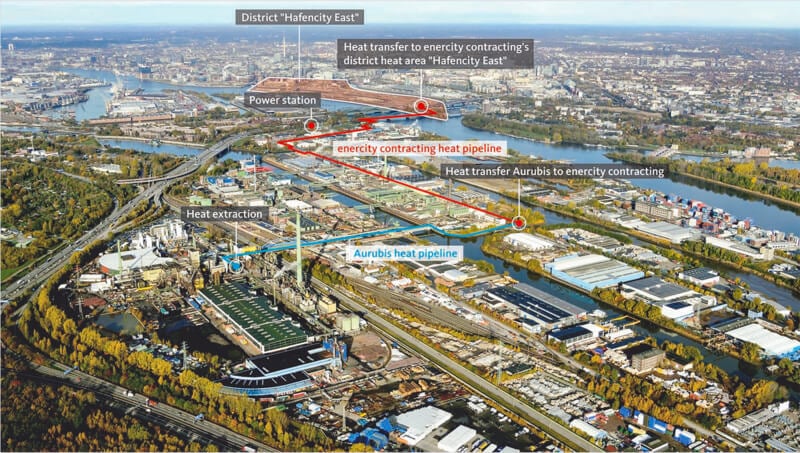 Current estimates indicate that, in addition to the what Aurubis uses at the plant site, the recovered heat supplies as many as 8,000 four-person households, as well as area offices, hotels, and a university. As the recovered heat has an effective carbon footprint of zero, the project reduces CO2 emissions by 20,000 tonnes per year – half of them at Aurubis itself. An additional benefit is that Aurubis no longer needs to rely on cooling water taken from the Elbe River, which further benefits the local ecology.