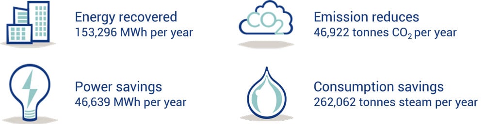 - They reduced their steam consumption by 262,062 tonnes/a