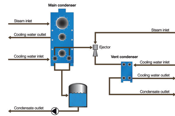 Alfa Laval installed AlfaCond, an efficient plate condenser, at one of the turbines. It was delivered as a complete solution, including condensate vessel, condensate pump, vacuum ejector system, instrumentation and control system. And to minimize fouling on the cooling-water side, Alfa Laval also installed an automatic self-cleaning ALF filter.