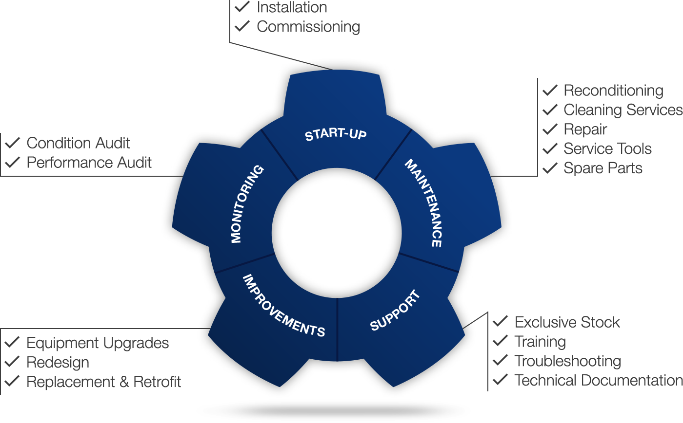 We are with you every step of the way: from sales to delivery, commissioning to service and spare parts. With a global support network and comprehensive offering of services, we can make sure your equipment delivers efficient, reliable performance for years to come.