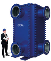 A compact heat exchanger transfers heat up to 5 times more efficiently than a shell-and-tube. They are available in a wide range of materials and sizes and can handle very high flow rates and tough conditions.