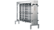 Adjustable feet on Alfa Laval multi section hygienic gasketed plate heat exchanger