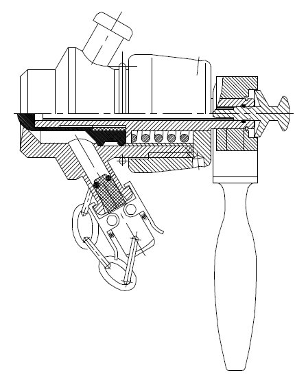 The in-line sampling valve is available with three different types of connection: tank, pipe and threaded. They operate on the same principle. Before the valve is opened, the closure should be placed on the upper hose connection. When the handle is turned to the horizontal position the sample starts to flow through the lower outlet. When the handle is turned back to the vertical position the valve shuts and the handle can be removed if required. Aseptic sampling can be taken using a special valve type with microport. If you remove the red cap, you can insert a hypodermic needle through a central channel into the membrane to take an aseptic sampling with the valve in the shut position. After sampling, flush the valve with water or alcohol. The aseptic sampling valve can be sterilized using alcohol or steam.