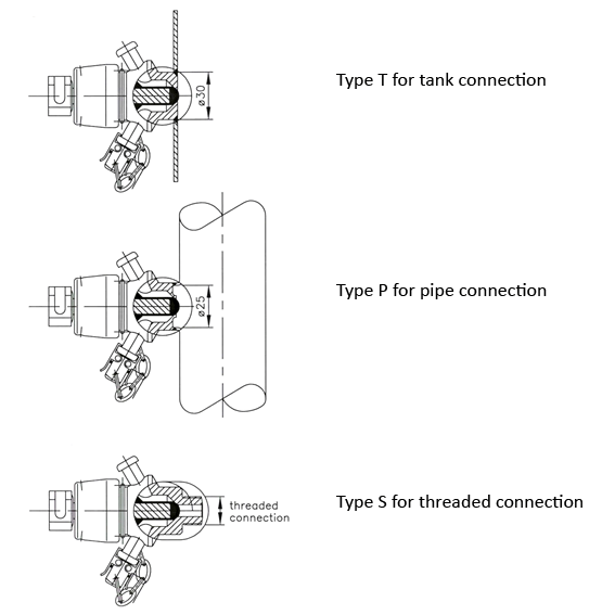 The membrane sampling valve is available in three different mounting designs: