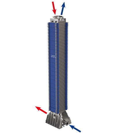 A Packinox+ plate-and-shell heat exchanger is also the ideal choice for certain gas-gas applications where a liquid is injected into the cold gas stream and is vapourised as it travels through the heat exchanger.