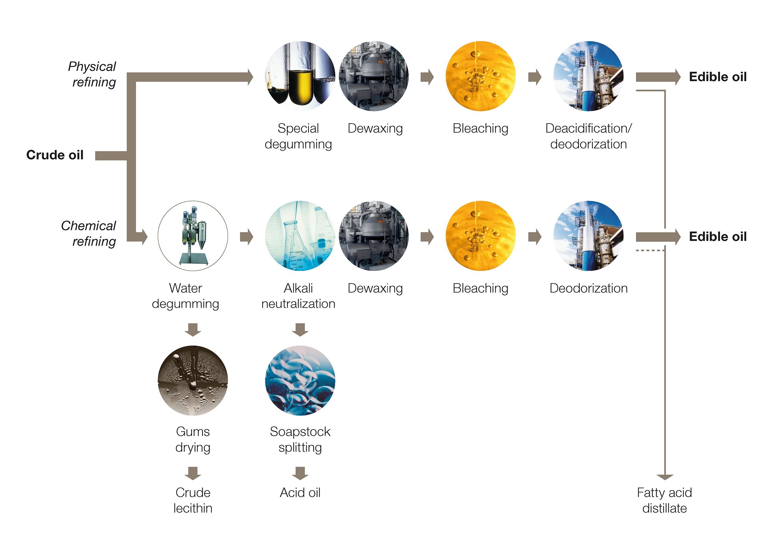 After pressing and clarification, crude oil passes through a series of edible oil refining processes – each optimized to preserve product integrity and flavour: