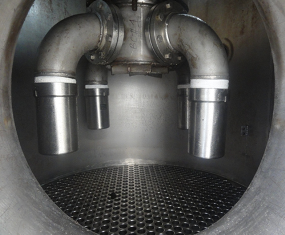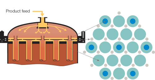 Caption: The FilmVap platter distributor ensures uniform liquid flow and complete tube wetting in the vertical heating tubes – minimizing fouling and extending cleaning intervals.
