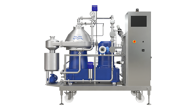 The advanced technology of the Clara series goes beyond the centrifuge itself. To ensure optimal clarification performance, Alfa Laval provides complete system solutions—including automation, piping, valves, and all essential process components. For smaller Claras clarifier centrifuges, the complete system is installed on a moveable skid with wheels. Larger systems feature components mounted on a self-supporting stainless steel frame.