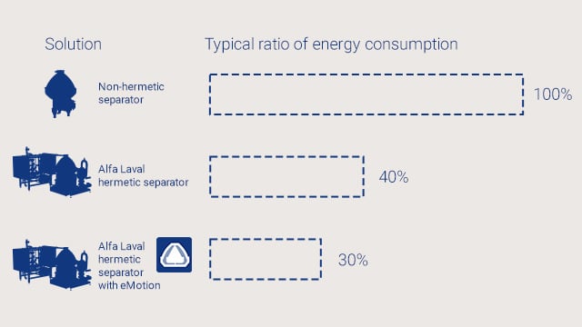 An innovation to minimize friction, which cuts the separator´s energy consumption and CO2 footprint by up to 75% when combined with Hermetic Design™.