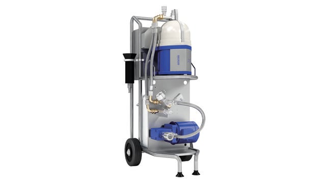 Emmie features a stainless-steel trolley and a centrifugal separator with two bowl sets—one for purification and one for clarification. The unit integrates all elements, allowing you to move it easily from tank to tank.