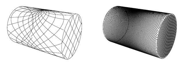 The self-cleaning rotary jet heads are driven and lubricated by the cleaning medium itself, which prevents any lubricants, such as oil or grease, from ending up inside the tank during the cleaning process. Cleaning fluid pressure, set to approximately 5 bar, causes the rotary jet head to rotate around the vertical and horizontal axes over a specified time period. Through eight cleaning cycles, the 3D rotation pattern, which becomes progressively denser, ensures that the jets delivered from the nozzles of the rotary jet head reach the farthest corners of the tank wall. The images below show the cleaning process inside a cylindrical, horizontal tank. While the initial cleaning cycle only roughly distributes the fluid, the subsequent ones result in the denser cleaning pattern, shown in the second image.